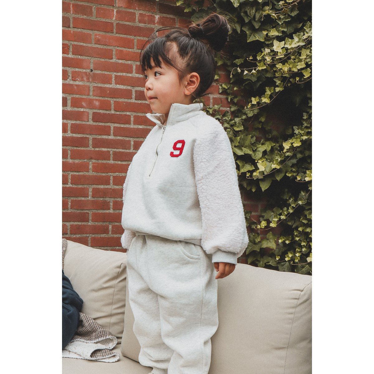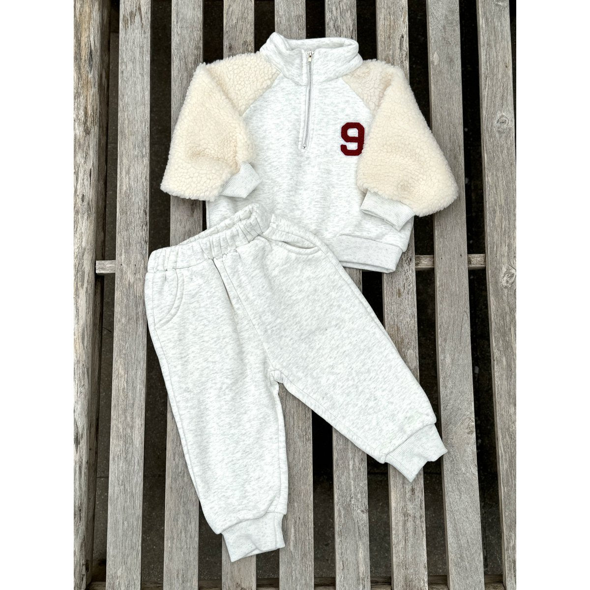 Laat je kleintje stralen in dit heerlijk zachte joggingspakje! Dit setje bestaat uit een warme fleece trui met halve rits en gewone joggingbroek. De speelse oversized look zorgt niet alleen voor comfort, maar ook voor een trendy uitstraling. Het cijferdetail op de borst geeft een sportieve finishing touch. Perfect voor actieve dagen of knusse momenten op de bank.