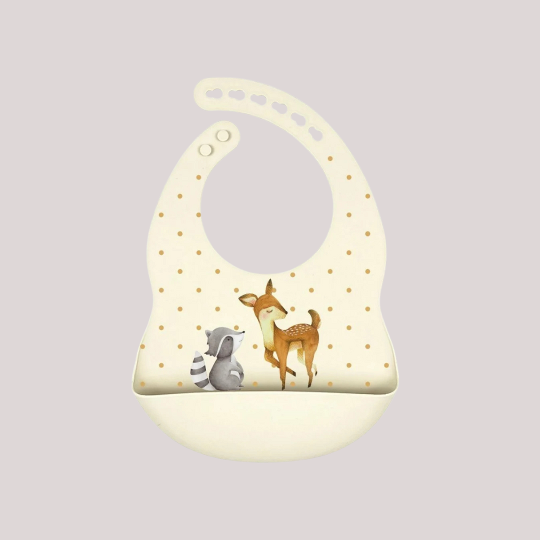 Siliconen slabber met opvangbakje Hert en Wasbeer - Beige